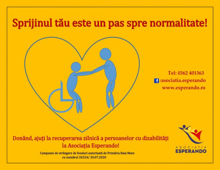 Campania poartă numele “Sprijinul tău un pas spre normalitate!”și este avizată de către CL Baia Mare, cu numărul 26324. Cei care doresc să sprijine activitățile Asociației Esperando, implicit recuperarea persoanelor cu afecțiuni fizice, găsesc urnele pentru donații, în următoarele locații: Electrica S.A.…